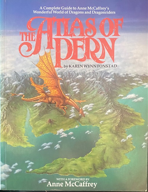 I’m especially fond of the Harper hall trilogy which deals (mostly) with Menolly, a girl who must deal with the prejudices that don’t allow her to play the music she loves (as well as being one of my more enduring literary crushes), a negative aspect of life in a post-tech mediaeval-ish setting. I’m also partial to any scene involving F’nor, one of the coolest characters ever put to paper. But the aspect of Pern that helps bring it the most to life is the fact that it has been mapped: I love maps in my genre reading, especially on a place as “real” as Pern feels. There is also an atlas, lovingly crafted by the late Karen Wynn Fonstad which only adds to the investment of your belief.