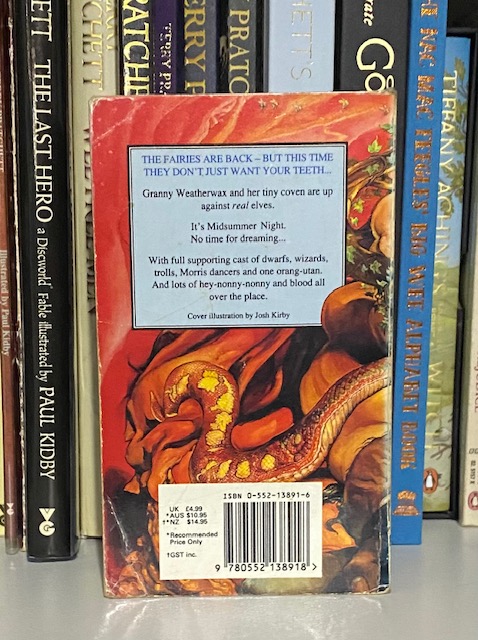 The Elves that inhabit the interdimensional spaces around the Discworld are of a different stripe altogether. Wyrd Sisters may have foreshadowed this: where that book stomped around on the structure of Shakespeare’s Macbeth, these elves – and this story – are straight out of A Midsummer Night’s Dream.